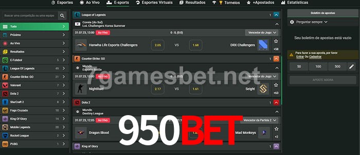 O 950bet oferece uma grande seleção de opções de apostas em e-sports com probabilidades competitivas